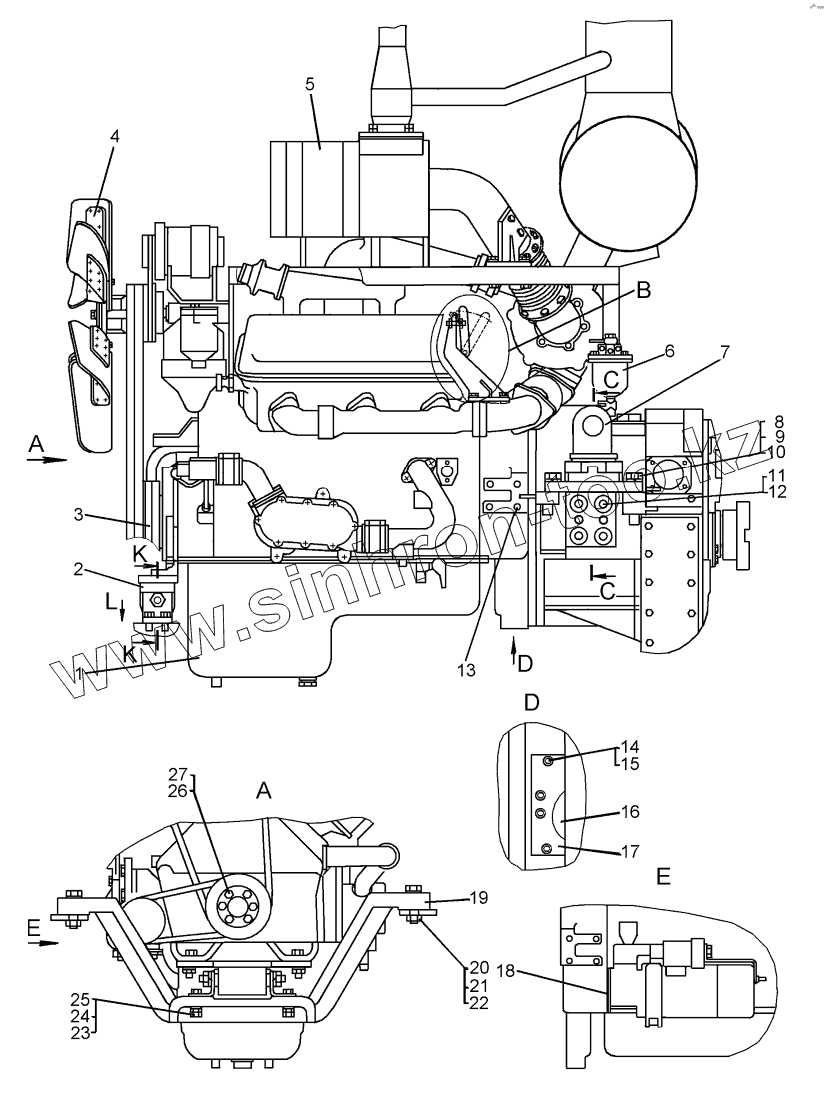 Каталог запасных частей к технике: ЧТЗ Бульдозер Б12. Установка двигателя