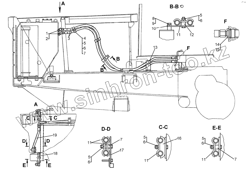 Каталог запасных частей к технике: ЧТЗ Бульдозер Б12. Установка передних трубопроводов