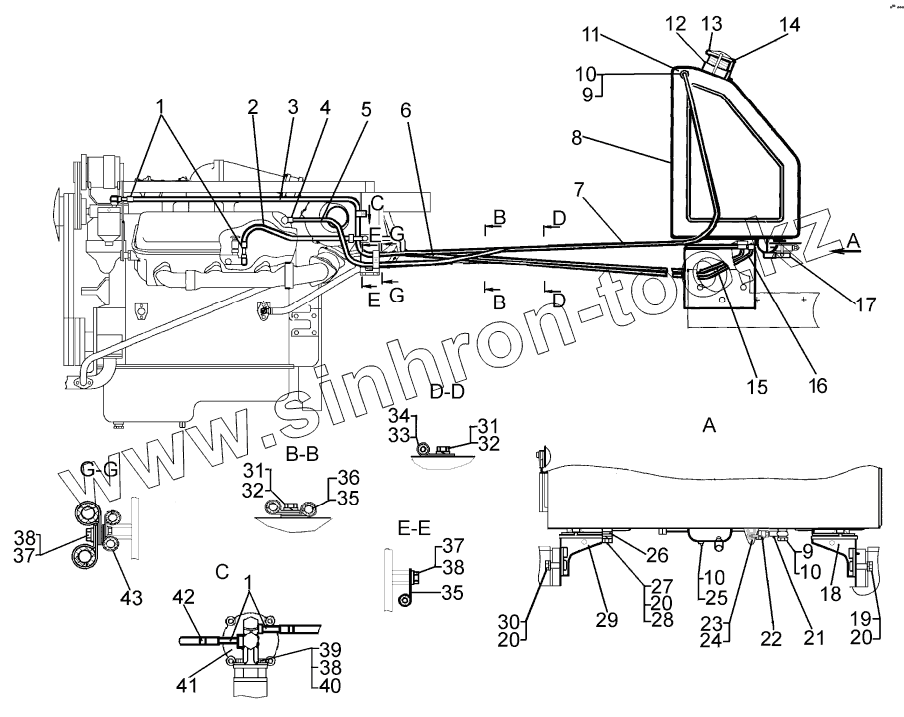 Каталог запасных частей к технике: ЧТЗ Бульдозер Б12. Установка топливного бака