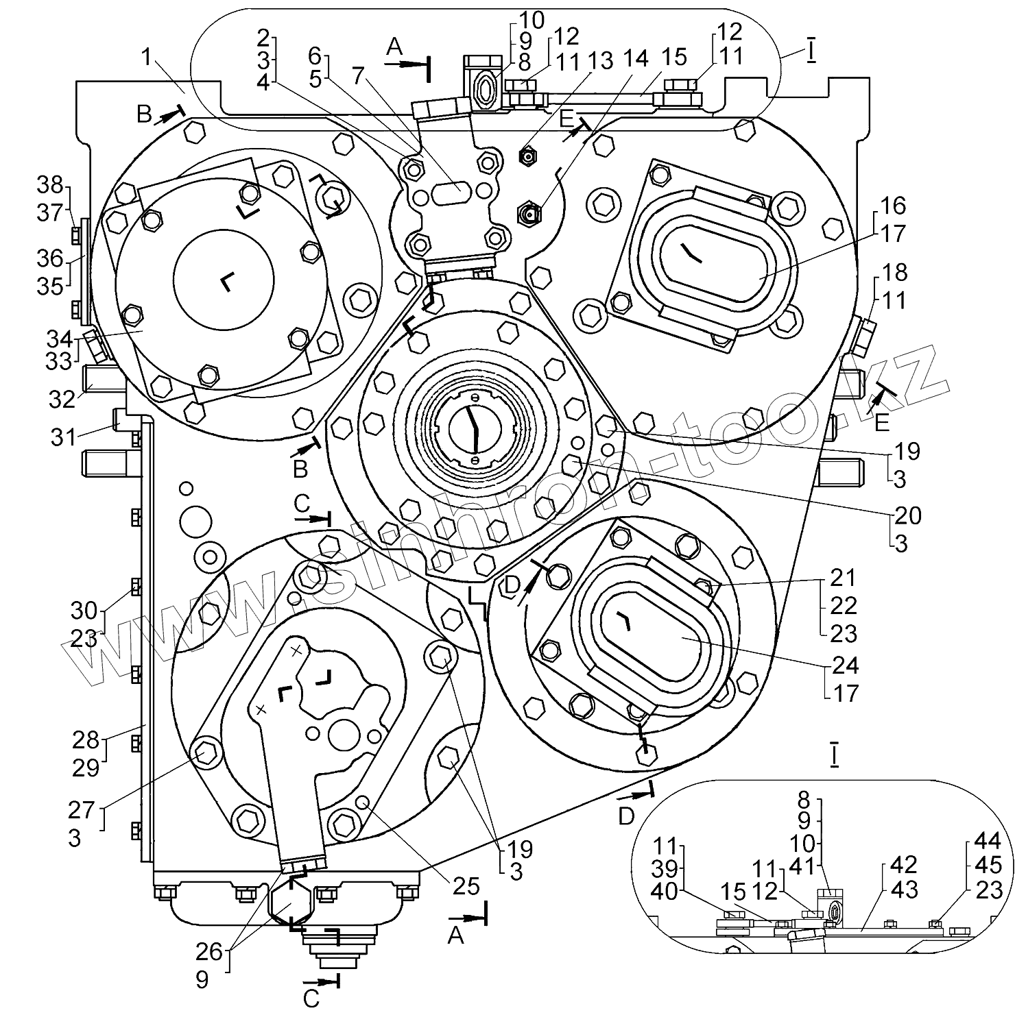 Каталог запасных частей к технике: ЧТЗ Бульдозер Б14. Гидротрансформатор с редуктором приводов