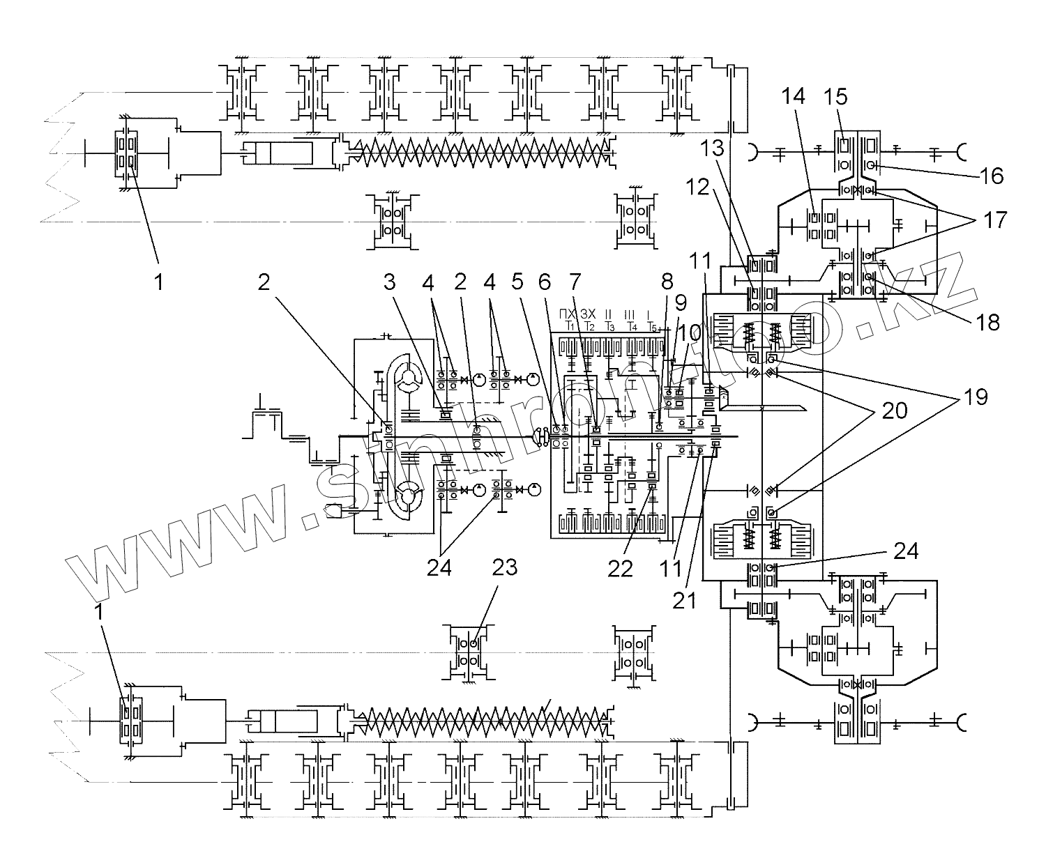 Каталог запасных частей к технике: ЧТЗ Бульдозер Б14. Схема расположения подшипников на тракторе