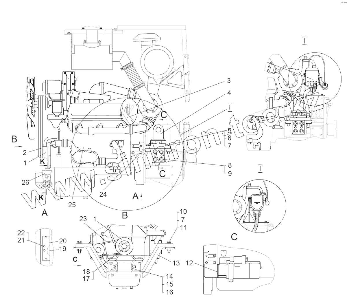 Каталог запасных частей к технике: ЧТЗ Бульдозер Б14. Установка двигателя