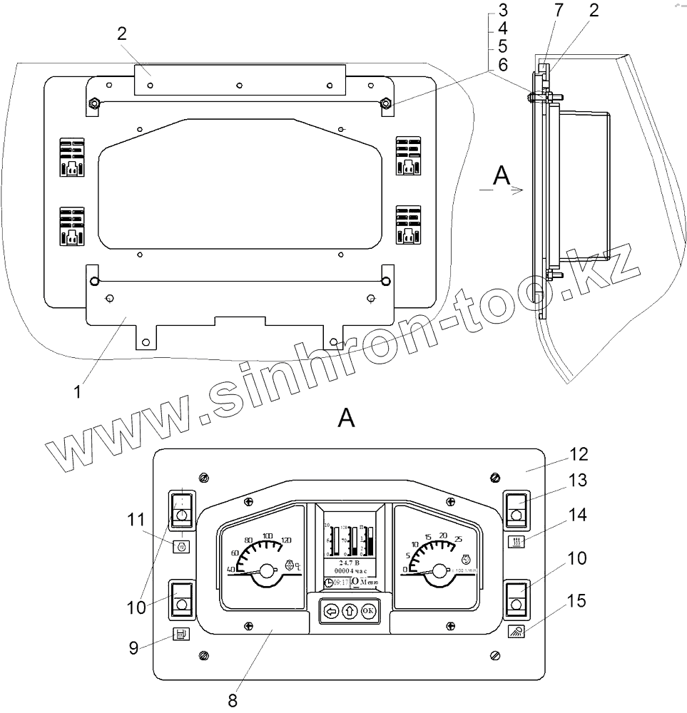 Каталог запасных частей к технике: ЧТЗ Бульдозер Б14. Установка панели приборов