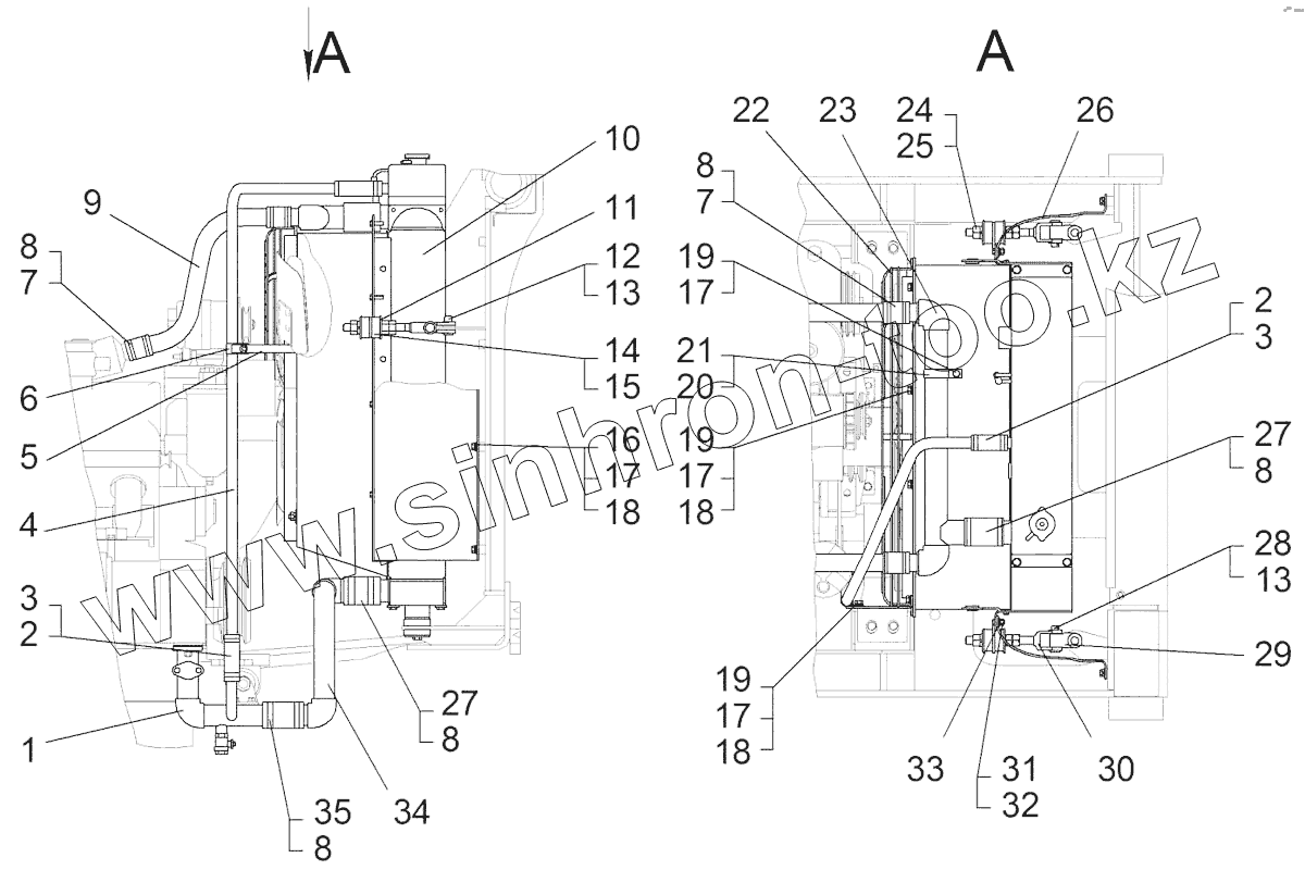 Каталог запасных частей к технике: ЧТЗ Бульдозер Б14. Установка радиаторов 114-303СП