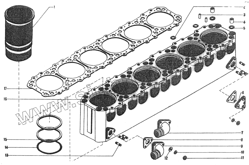 Каталог запасных частей к технике: ЧТЗ ДЭТ-250М2. Блок цилиндров