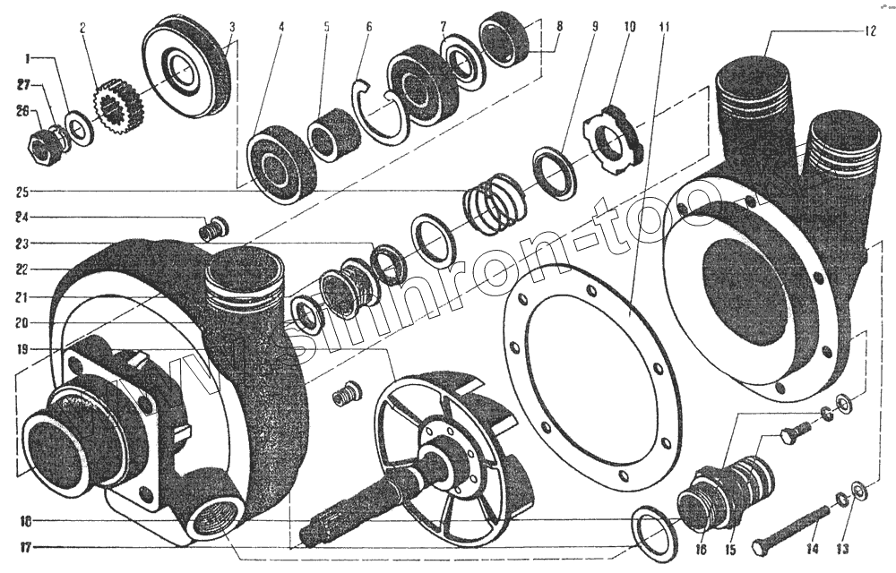 Каталог запасных частей к технике: ЧТЗ ДЭТ-250М2. Водяной насос
