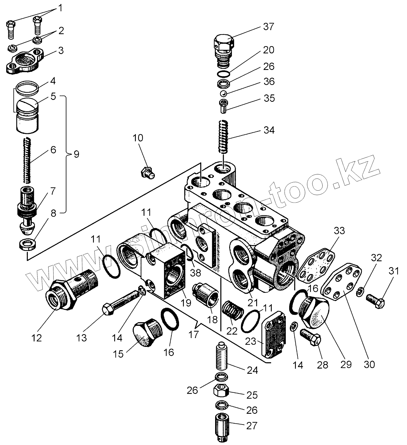 Каталог запасных частей к технике: ЧТЗ Кран ТР-20, ТР-12. Гидрораспределитель. Корпус