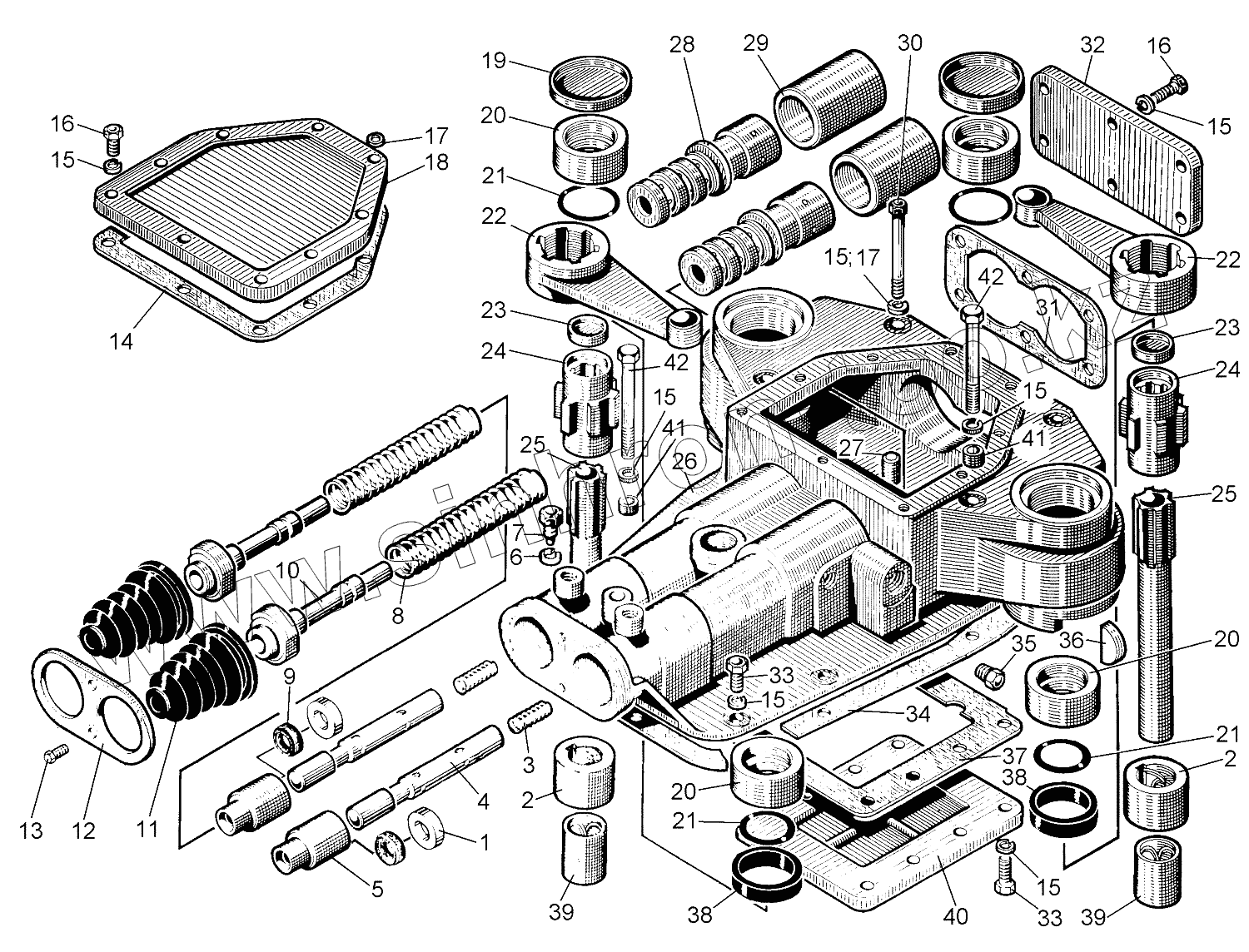 Каталог запасных частей к технике: ЧТЗ Кран ТР-20, ТР-12. Сервомеханизм управления поворотом