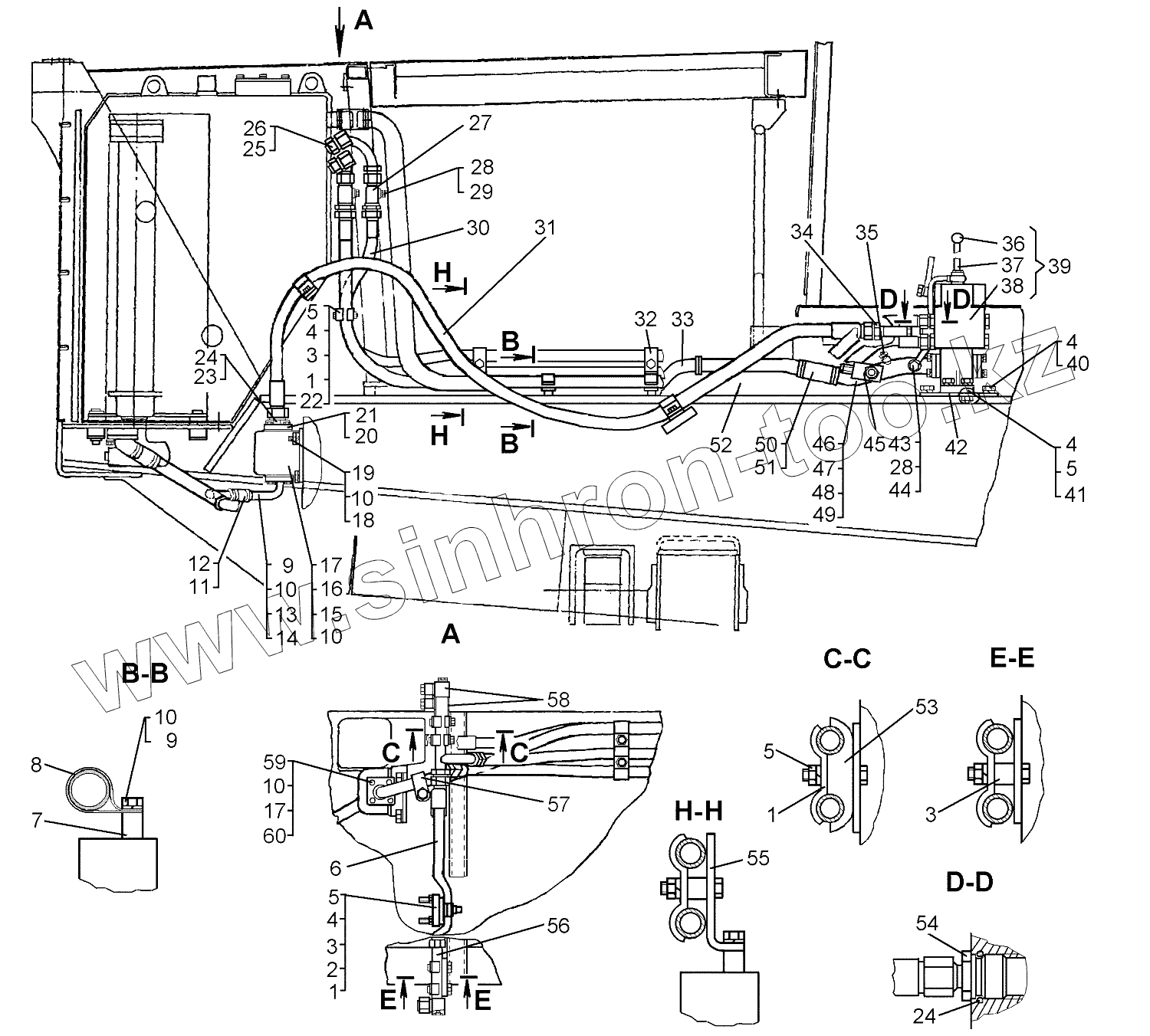 Каталог запасных частей к технике: ЧТЗ Кран ТР-20, ТР-12. Установка гидросистемы бульдозера на трубоукладчике