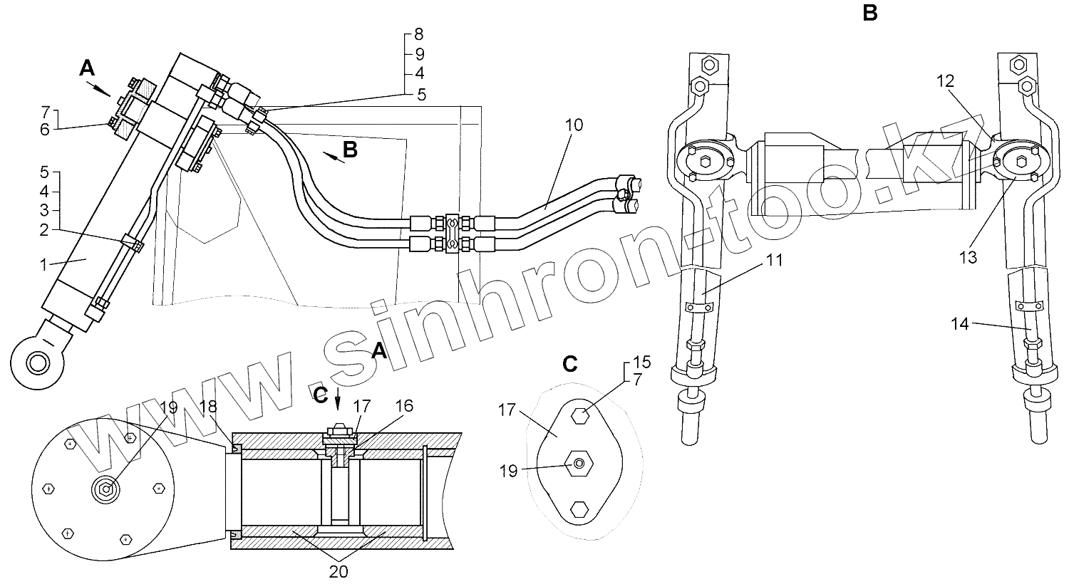 Каталог запасных частей к технике: ЧТЗ Кран ТР-20, ТР-12. Установка гидроцилиндров