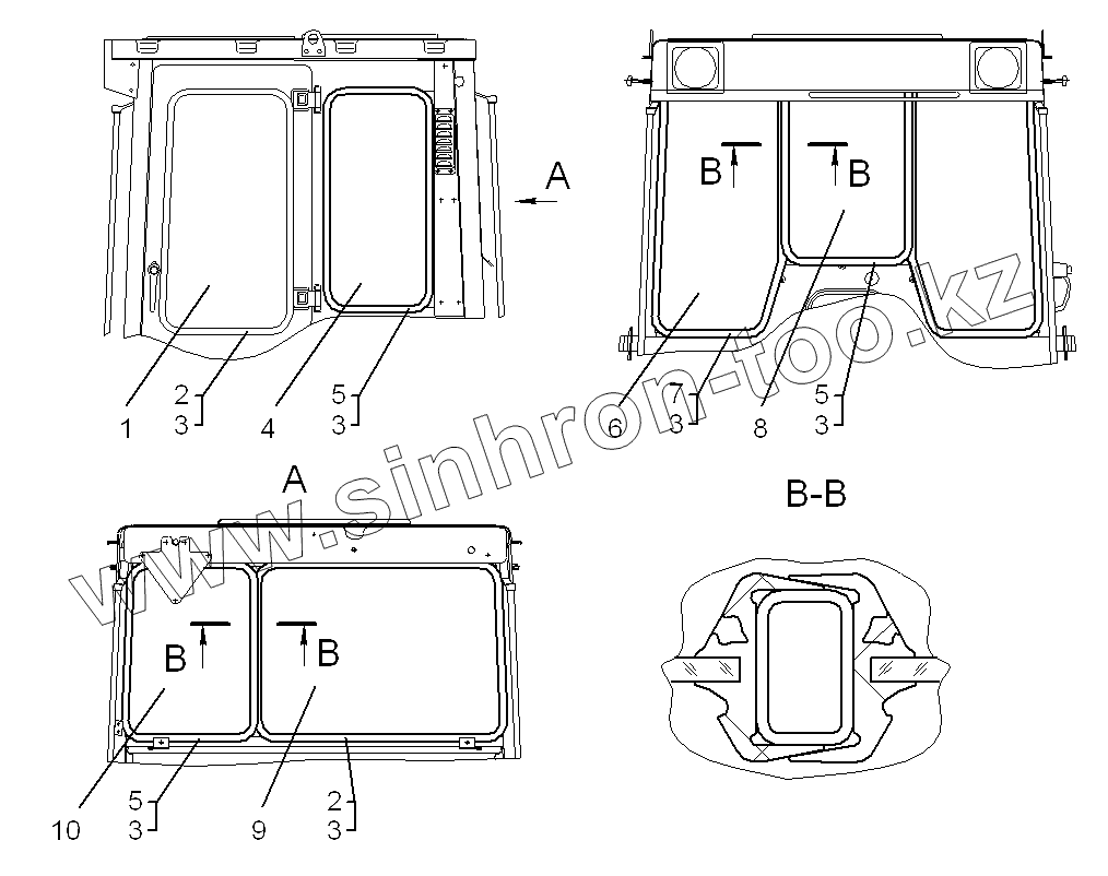Каталог запасных частей к технике: ЧТЗ Кран ТР-20, ТР-12. Установка стекол