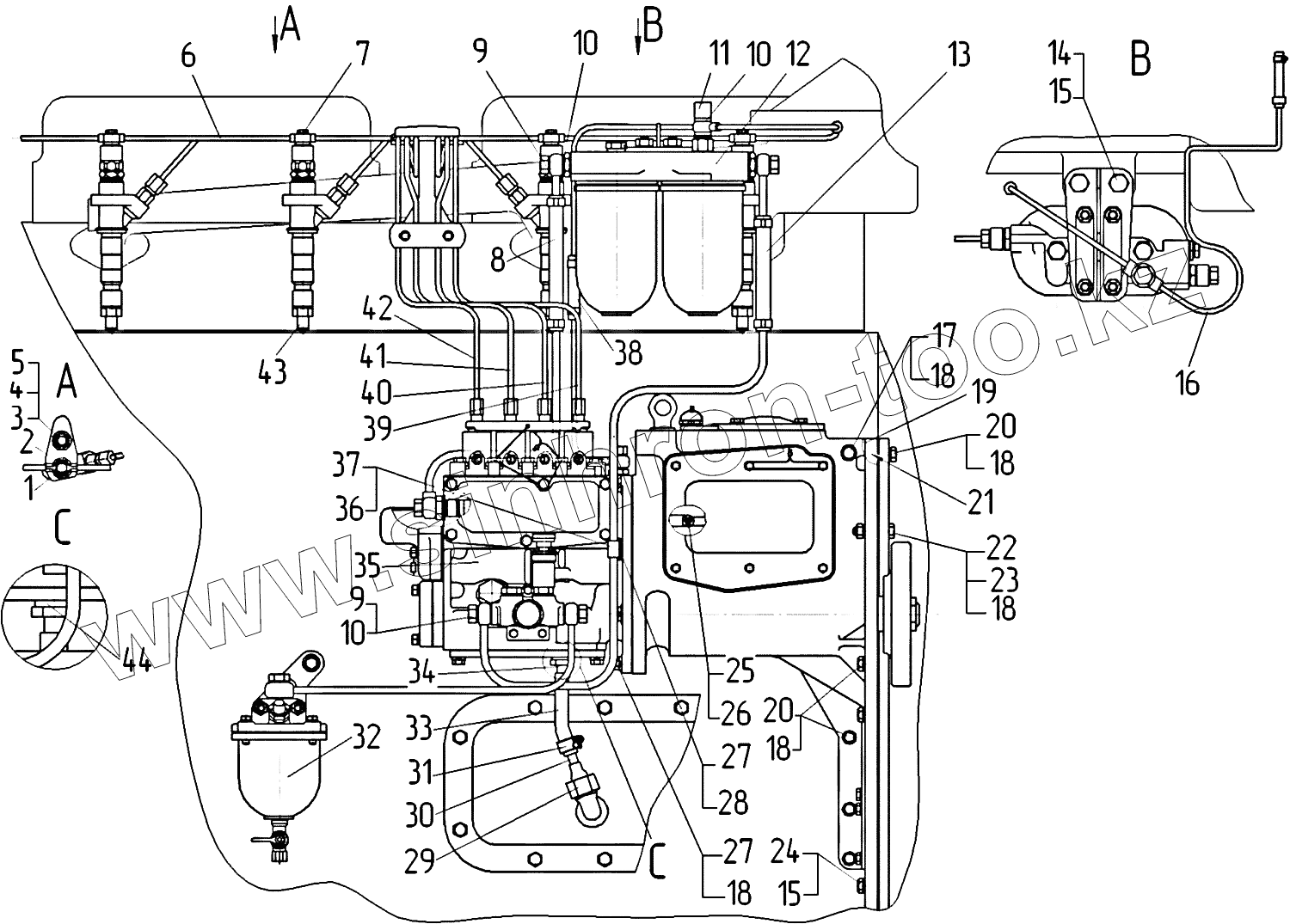 Каталог запасных частей к технике: ЧТЗ Кран ТР-20, ТР-12. Установка топливной аппаратуры