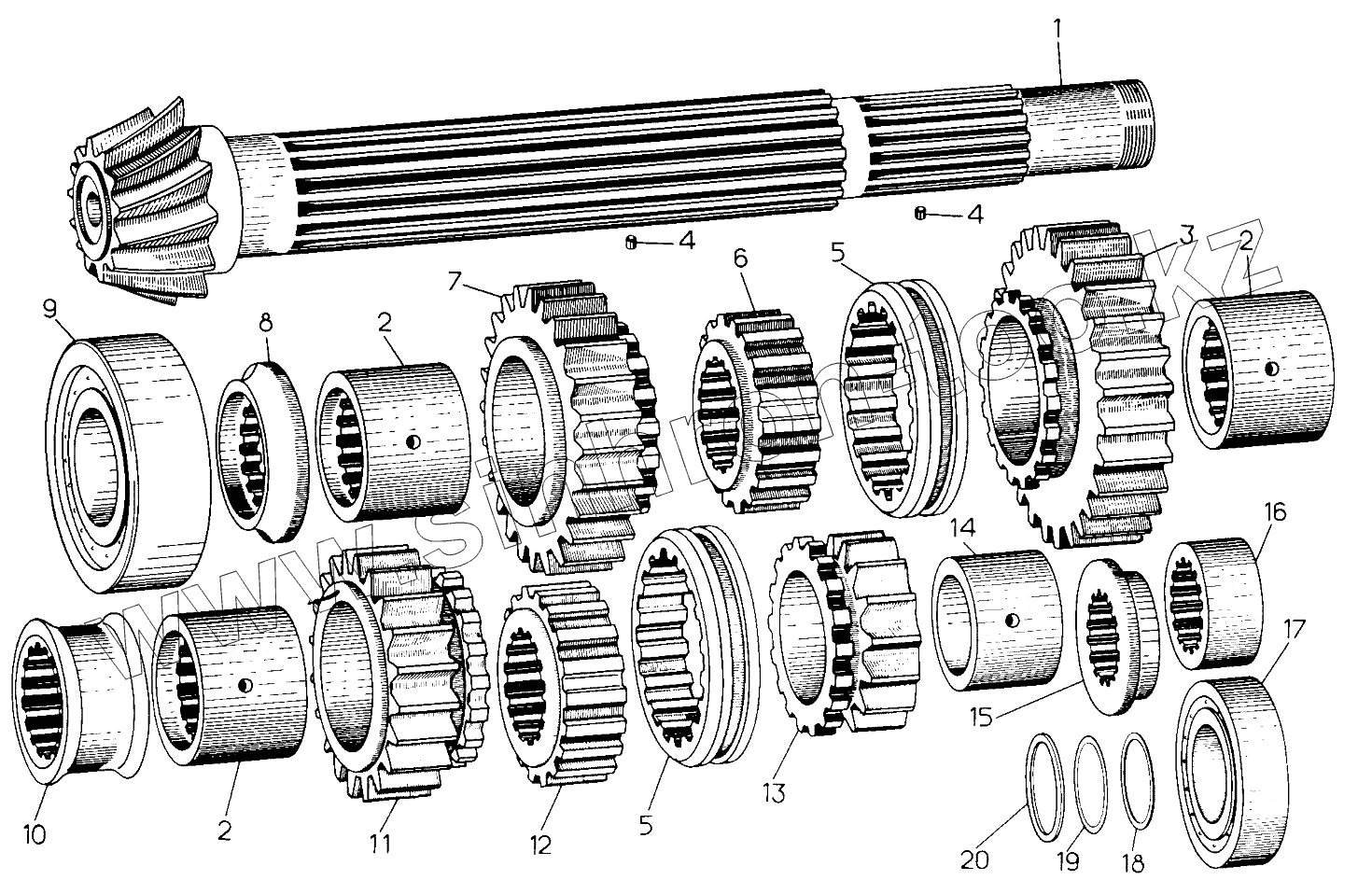 Каталог запасных частей к технике: ЧТЗ Кран ТР-20, ТР-12. Вал нижний