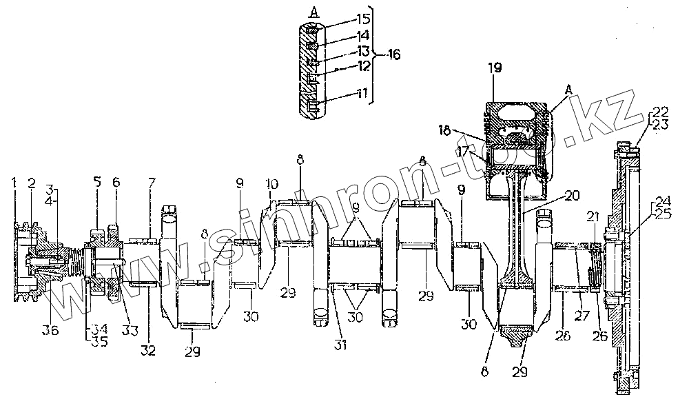 Каталог запасных частей к технике: ЧТЗ Т-10.02. Кривошипно-шатунный механизм дизеля