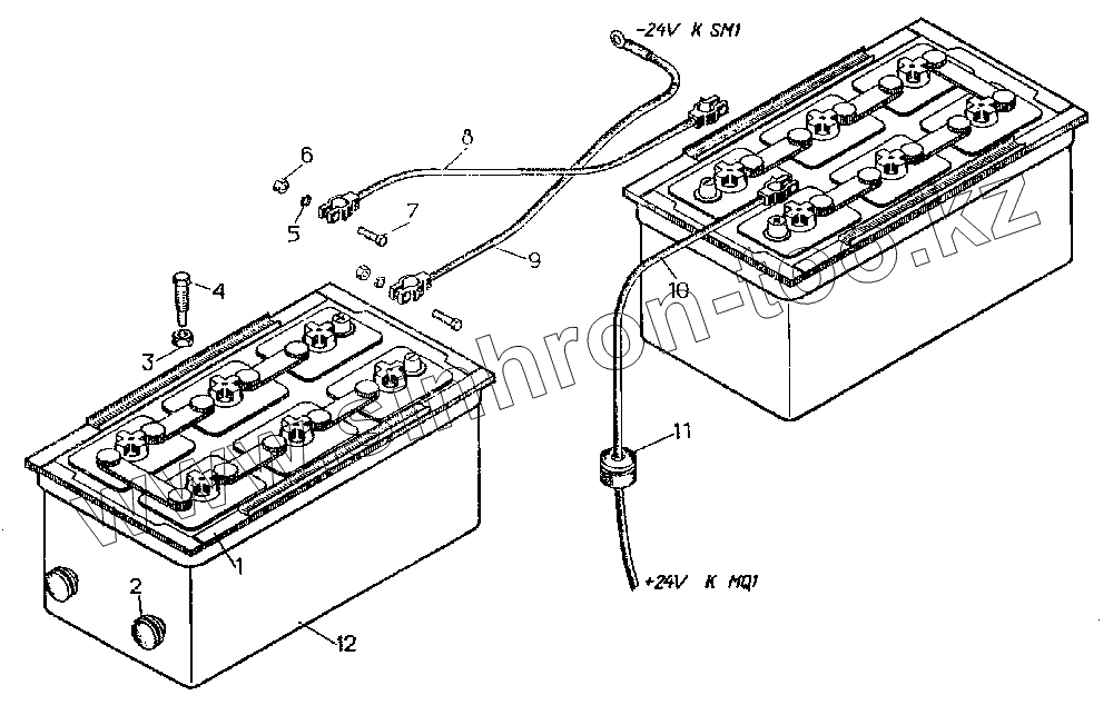 Каталог запасных частей к технике: ЧТЗ Т-10.02. Установка аккумуляторных батарей