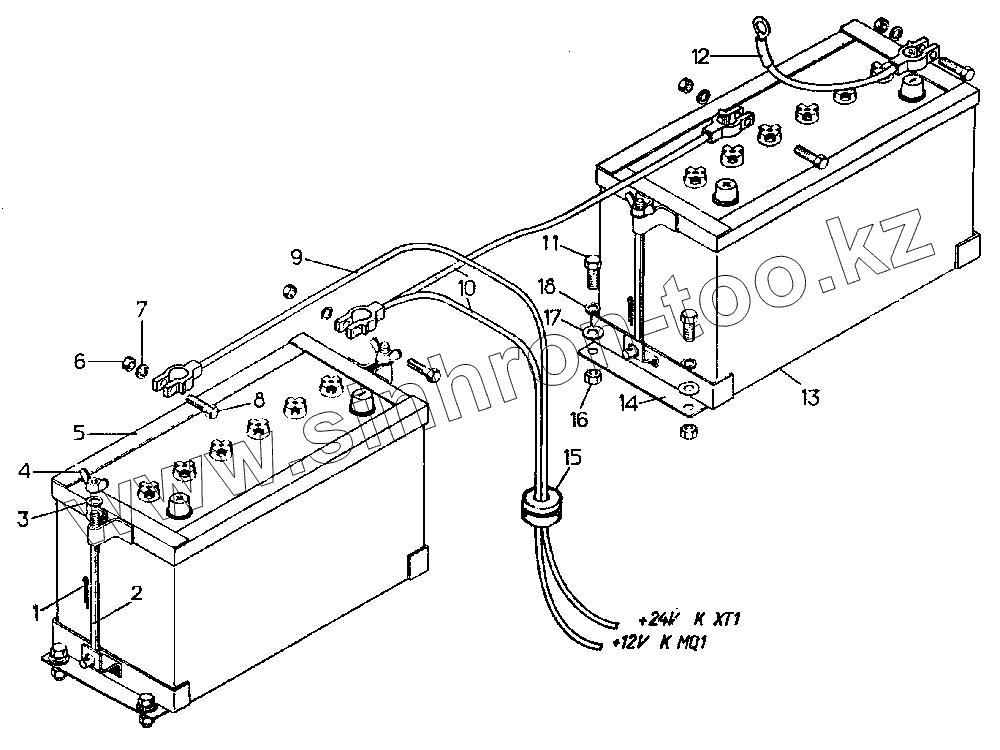 Каталог запасных частей к технике: ЧТЗ Т-10.02. Установка аккумуляторных батарей