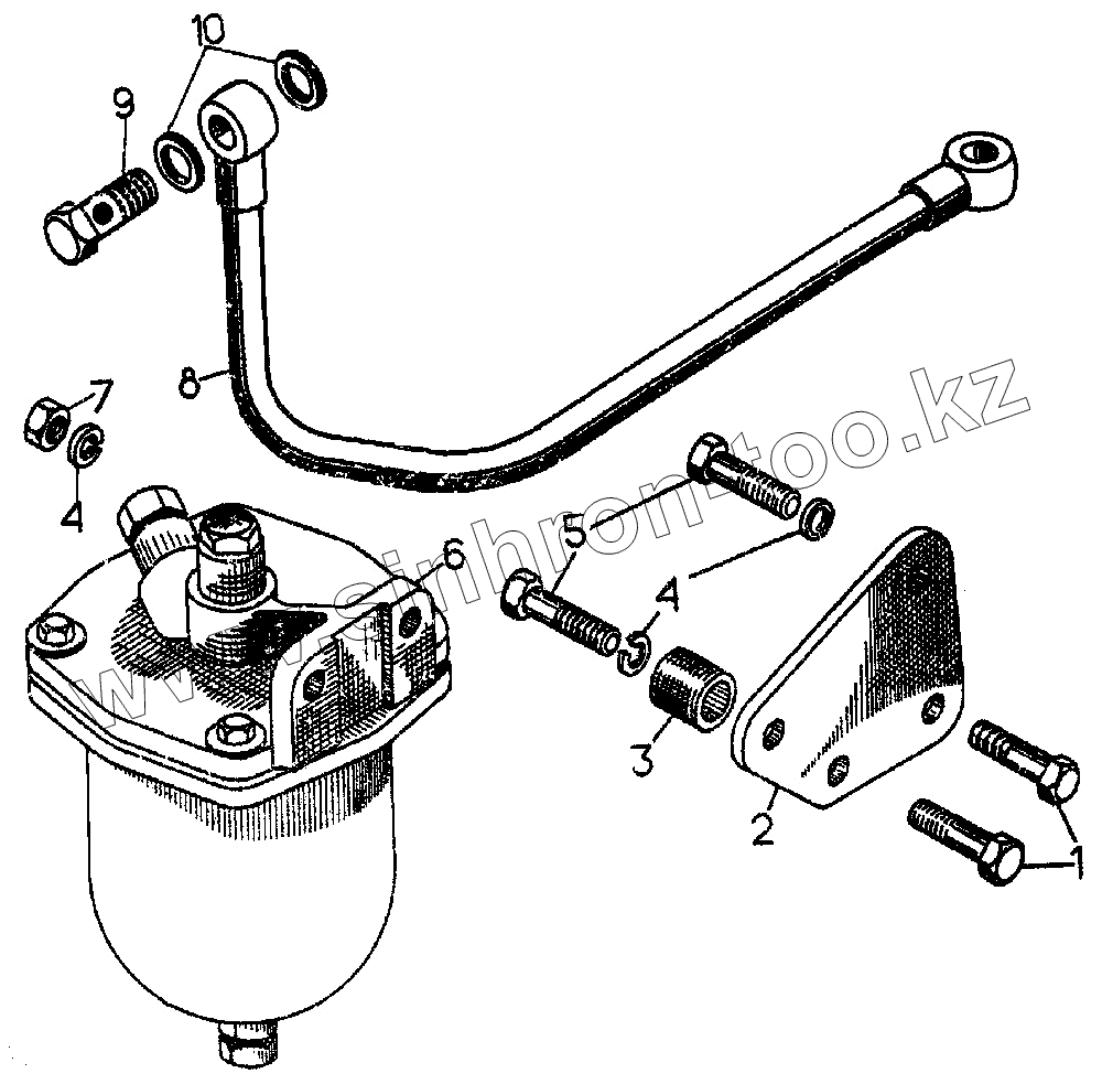 Каталог запасных частей к технике: ЧТЗ Т-10.02. Установка топливного фильтра грубой очистки