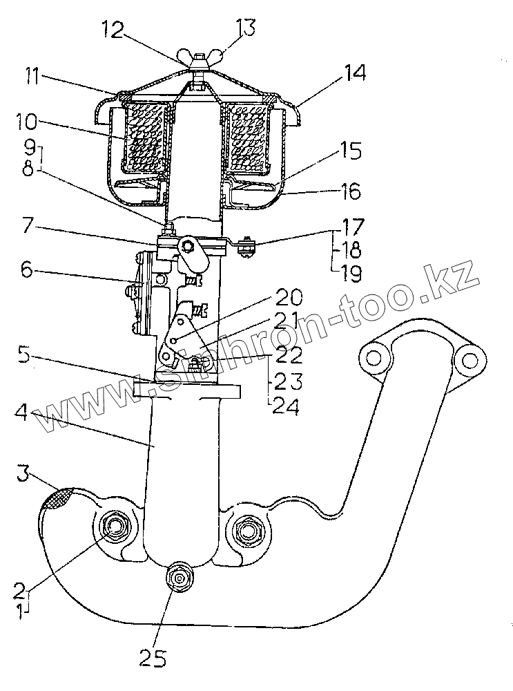 Каталог запасных частей к технике: ЧТЗ Т-10.02. Установка воздухоочистителя пускового двигателя