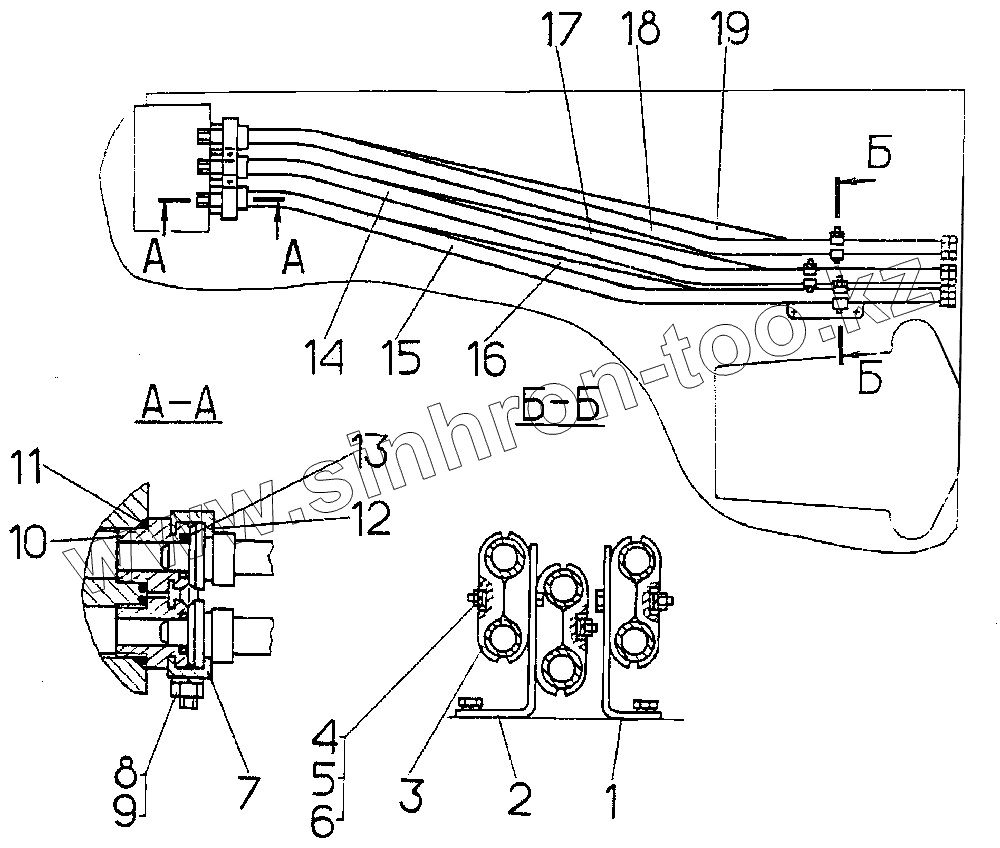 Каталог запасных частей к технике: ЧТЗ Т-10.02. Установка задних трубопроводов