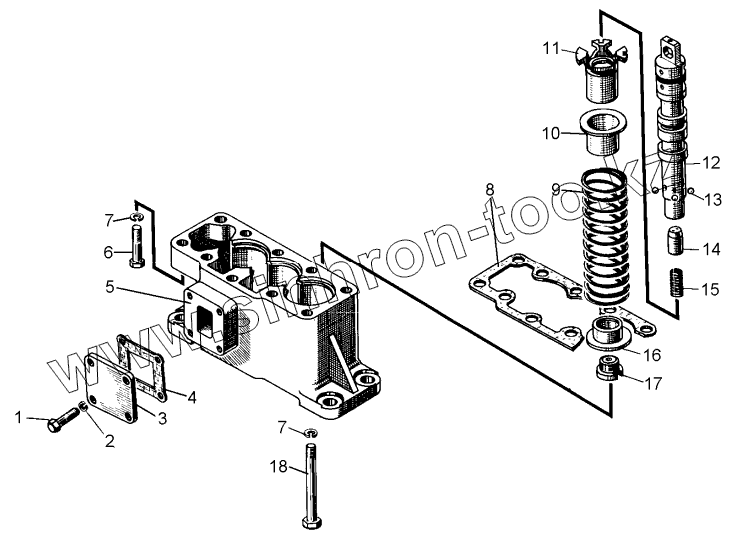 Каталог запасных частей к технике: ЧТЗ Т-10М. Гидрораспределитель. Крышка нижняя