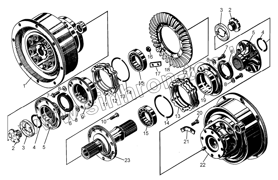 Каталог запасных частей к технике: ЧТЗ Т-10М. Главная передача с бортовыми фрикциoнами