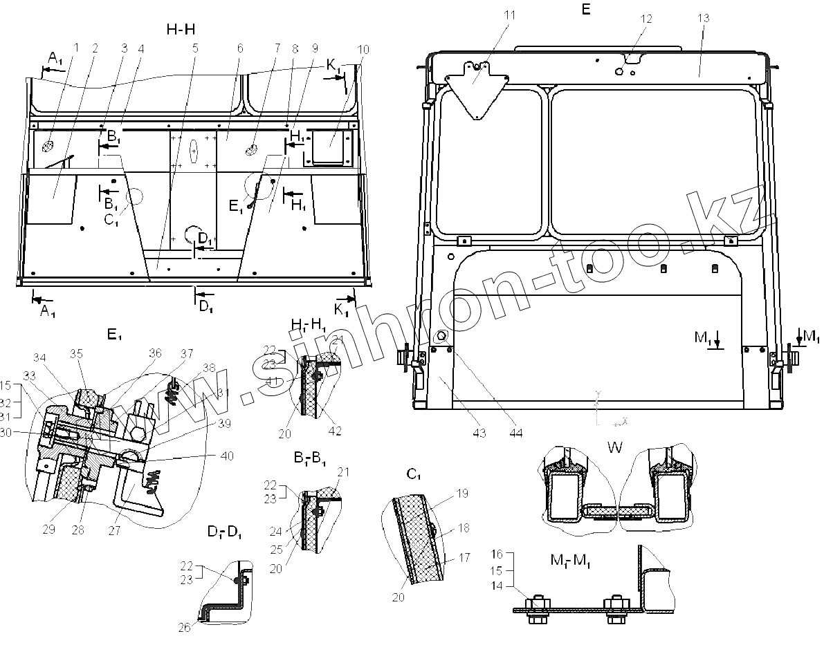 Кабина (для трактора с гидромеханической трансмиссией) – продолжение