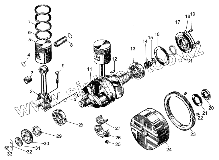 Кривошипно-шатунный механизм пускового двигателя