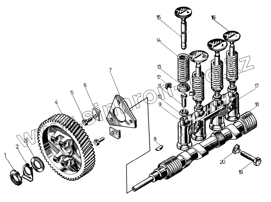 Каталог запасных частей к технике: ЧТЗ Т-10М. Механизм газораспределения пускового двигателя