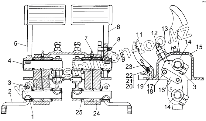 Каталог запасных частей к технике: ЧТЗ Т-10М. Механизм управления тормозами