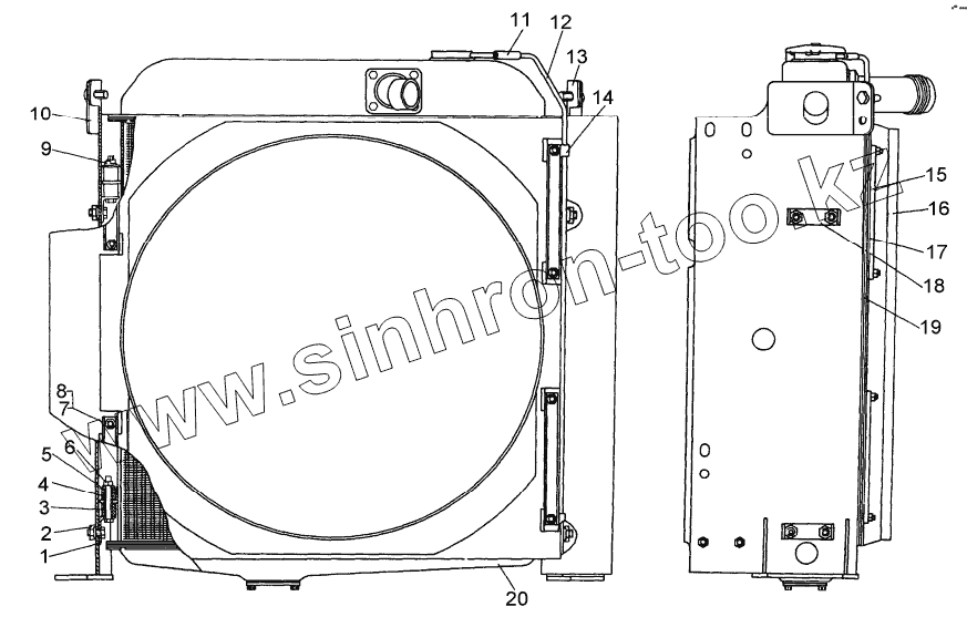 Каталог запасных частей к технике: ЧТЗ Т-10М. Радиатор с рамой
