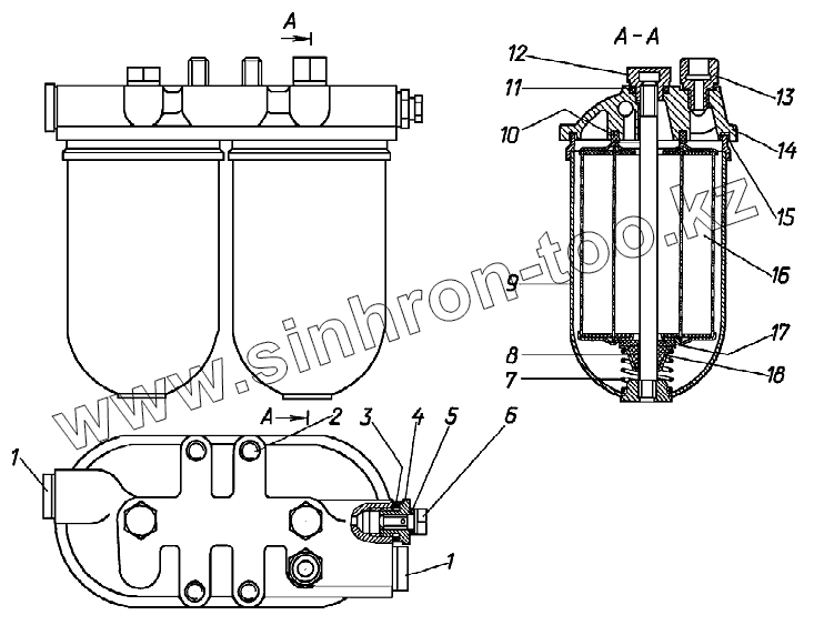 Каталог запасных частей к технике: ЧТЗ Т-10М. Топливный фильтр тонкой очистки