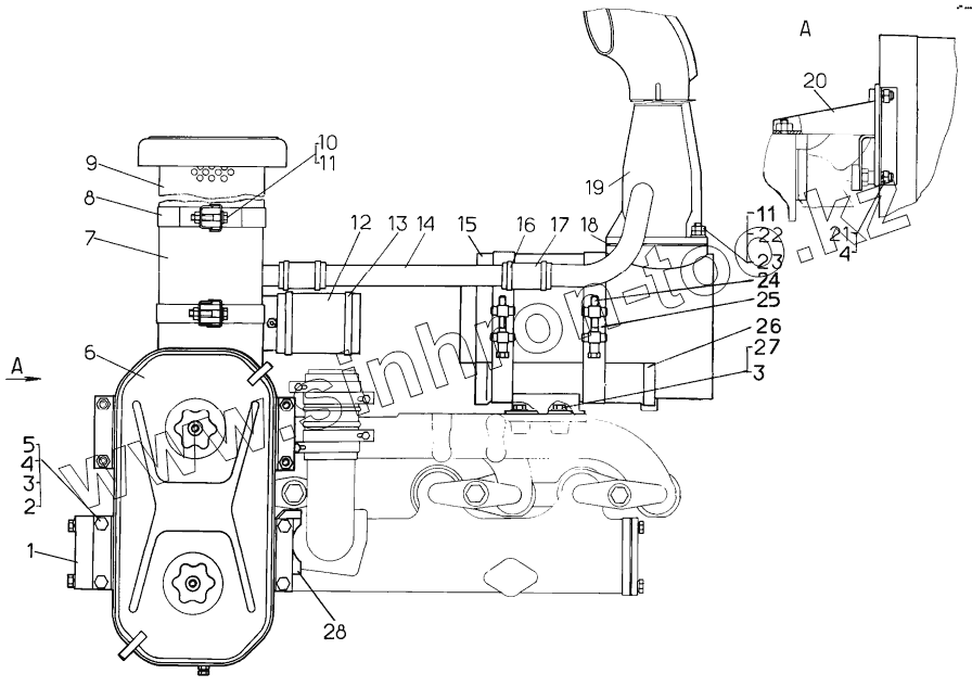 Каталог запасных частей к технике: ЧТЗ Т-10М. Установка агрегатов систем впуска и выпуска