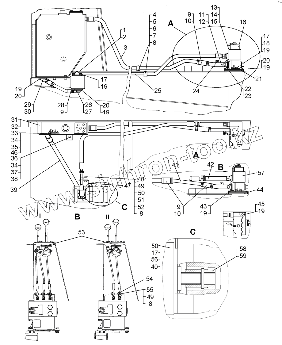 Каталог запасных частей к технике: ЧТЗ Т-10М. Установка гидросистемы