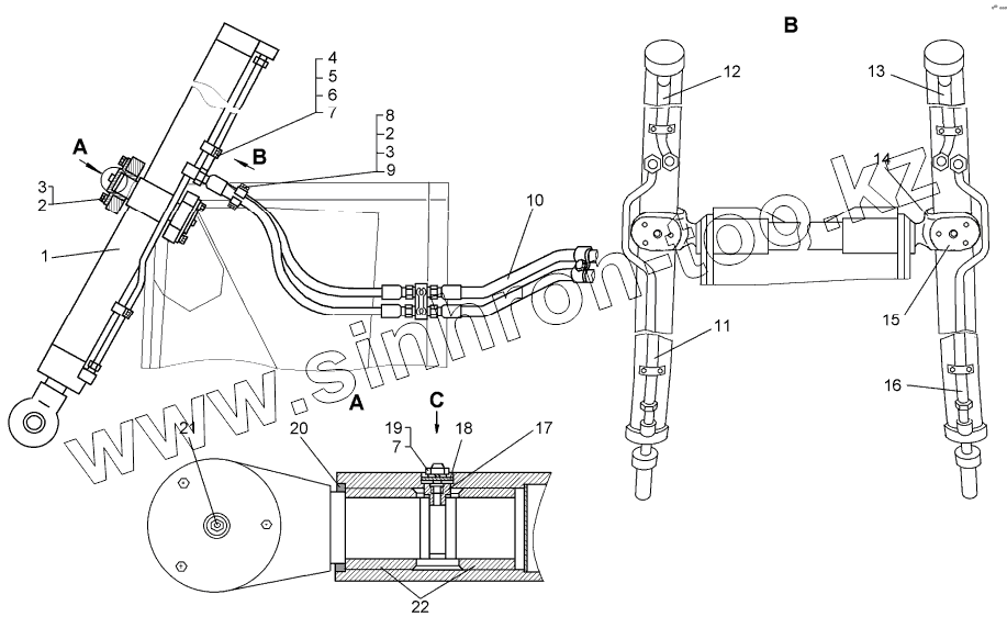 Каталог запасных частей к технике: ЧТЗ Т-10М. Установка гидроцилиндров