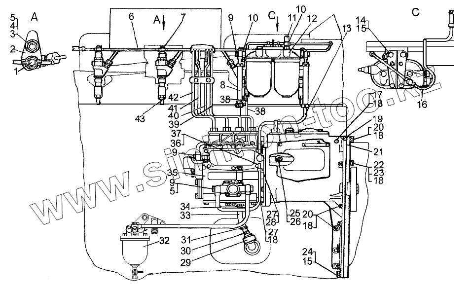 Каталог запасных частей к технике: ЧТЗ Т-10М. Установка топливной аппаратуры
