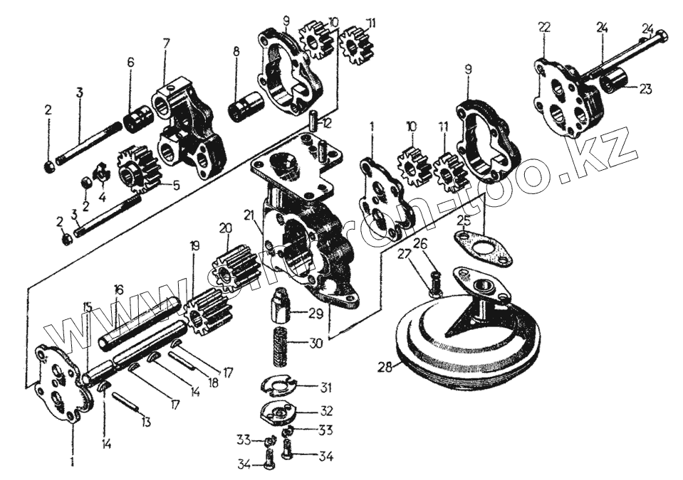 Каталог запасных частей к технике: ЧТЗ Т-130. Масляный насос комплект 29-09-124СП
