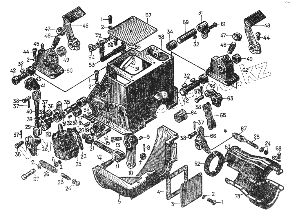 Каталог запасных частей к технике: ЧТЗ Т-130. Механизм управления муфтой сцепления 24-15-3СП