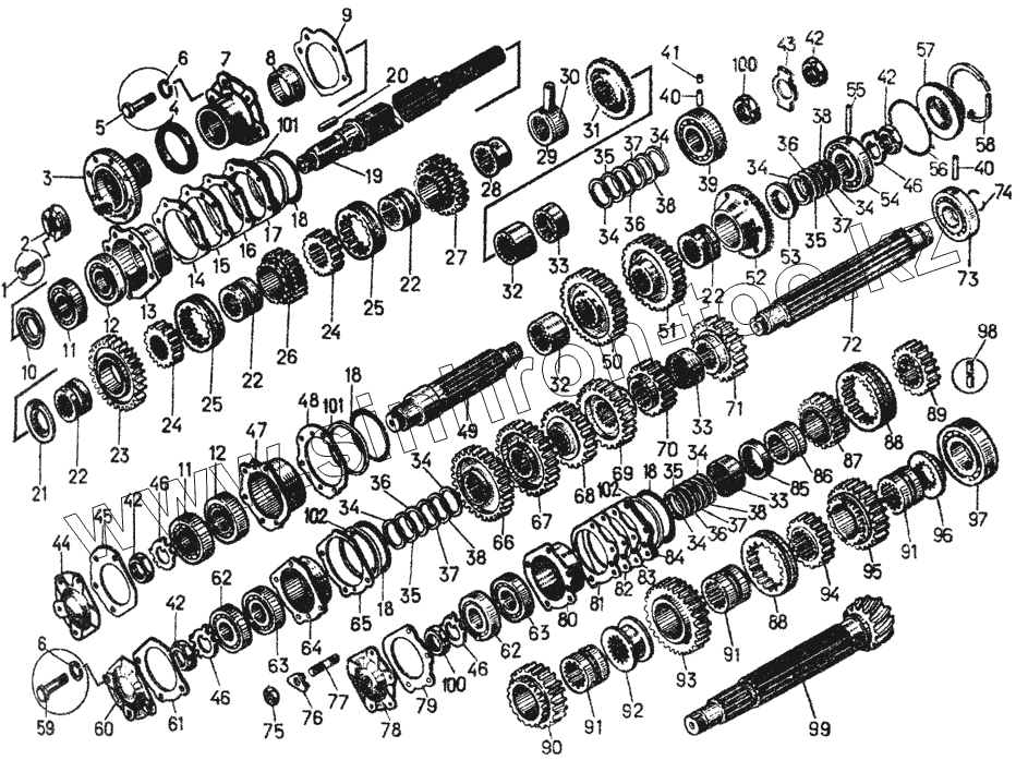 Каталог запасных частей к технике: ЧТЗ Т-130. Валы и шестерни коробки передач
