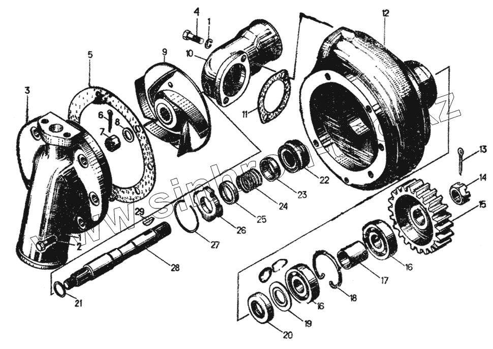 Каталог запасных частей к технике: ЧТЗ Т-130. Водяной насос, 16-08-140СП