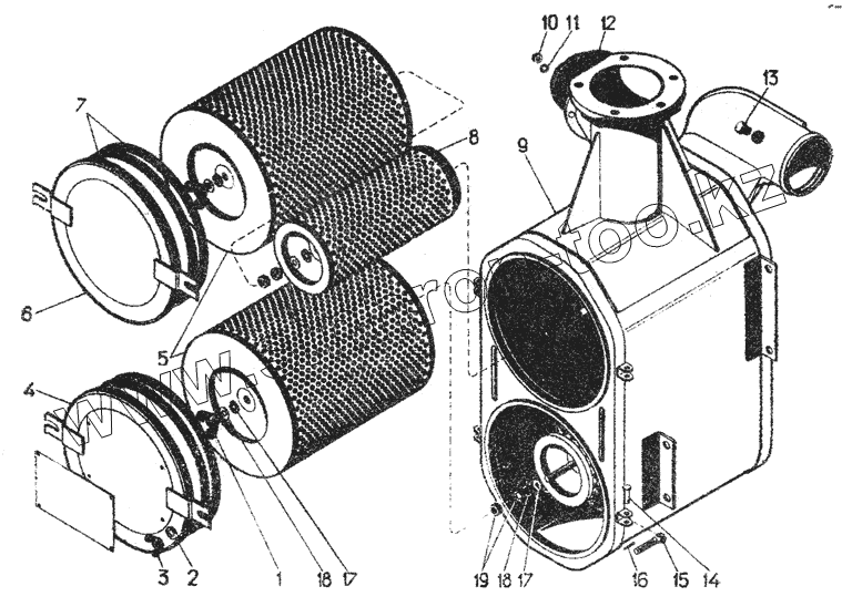 Каталог запасных частей к технике: ЧТЗ Т-130. Воздухоочиститель, комплект 51-05-100СП