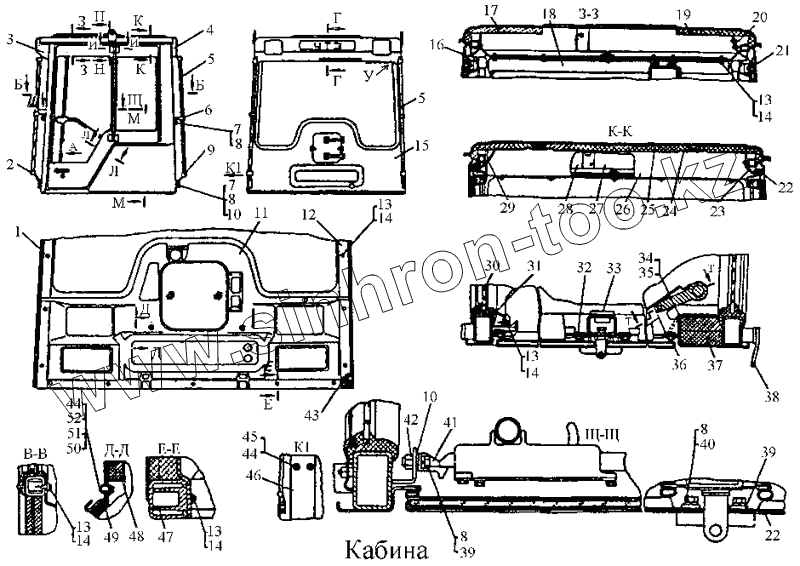Каталог запасных частей к технике: ЧТЗ Т-170. Кабина