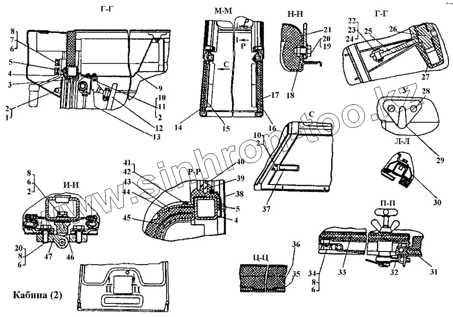 Каталог запасных частей к технике: ЧТЗ Т-170. Кабина