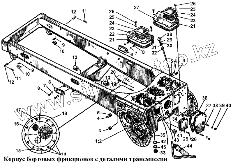 Каталог запасных частей к технике: ЧТЗ Т-170. Корпус бортовых Фрикционов с деталями трансмиссии