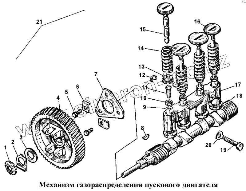 Каталог запасных частей к технике: ЧТЗ Т-170. Механизм газораспределения пускового двигателя