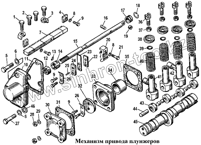 Каталог запасных частей к технике: ЧТЗ Т-170. Механизм привода плунжеров