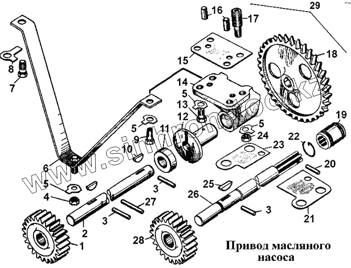 Каталог запасных частей к технике: ЧТЗ Т-170. Привод масляного насоса