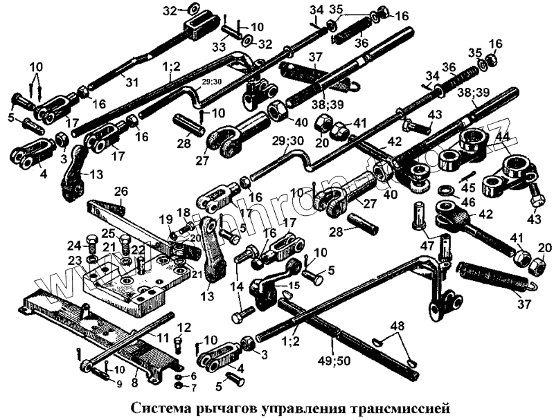 Каталог запасных частей к технике: ЧТЗ Т-170. Система рычагов управления трансмиссией