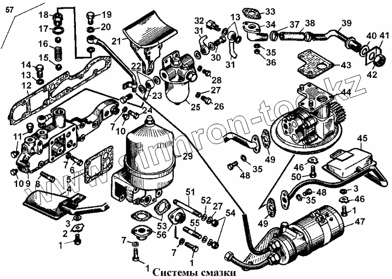 | 57 | 51-09-5СП | Система смазки дизеля болотоходного трактора с пусковым двигателем | |