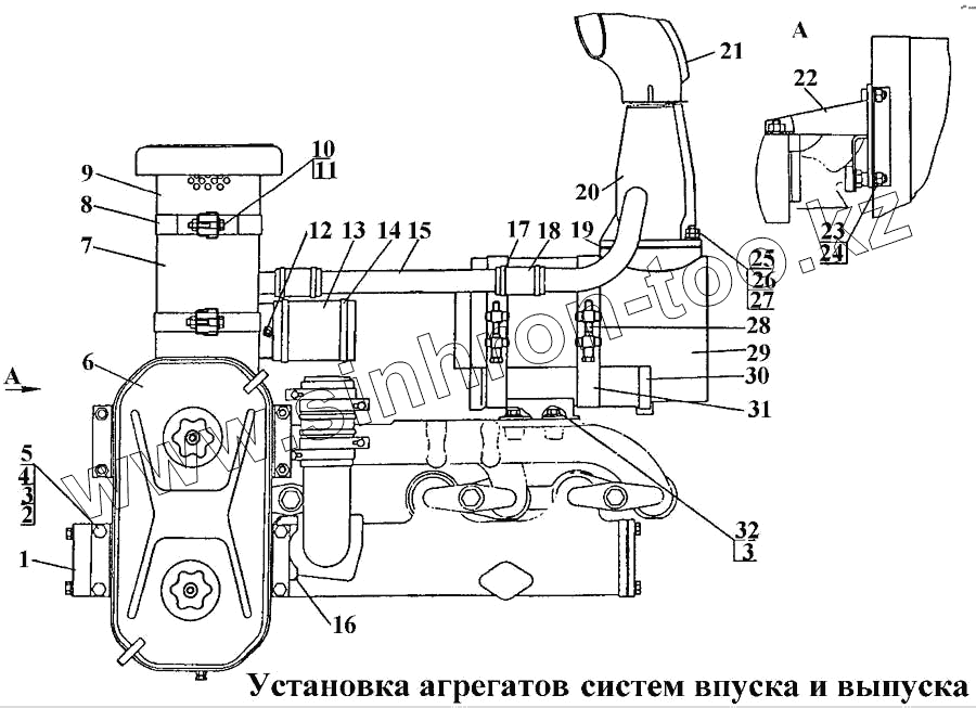 Каталог запасных частей к технике: ЧТЗ Т-170. Установка агрегатов систем впуска и выпуска