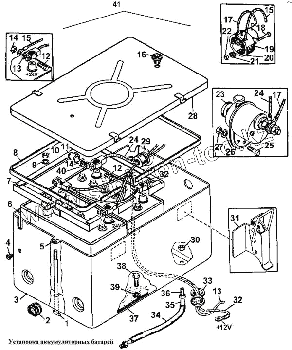 Каталог запасных частей к технике: ЧТЗ Т-170. Установка аккумуляторных батарей